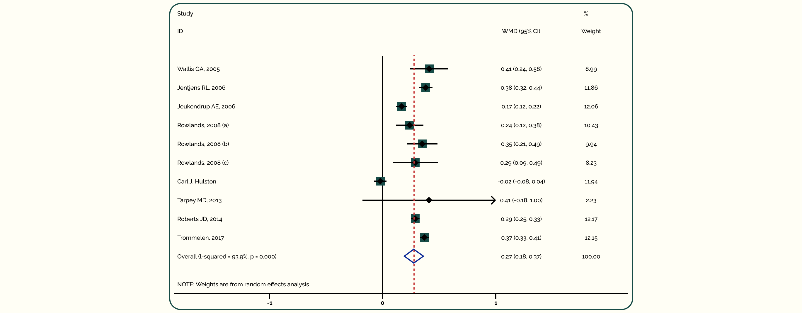 Source : Dezfuli ZG et al., Comparing the Effects of Glucose-Fructose versus Glucose on the Oxidation Rate: A Systematic Review and Meta-Analysis, Apr 2025.